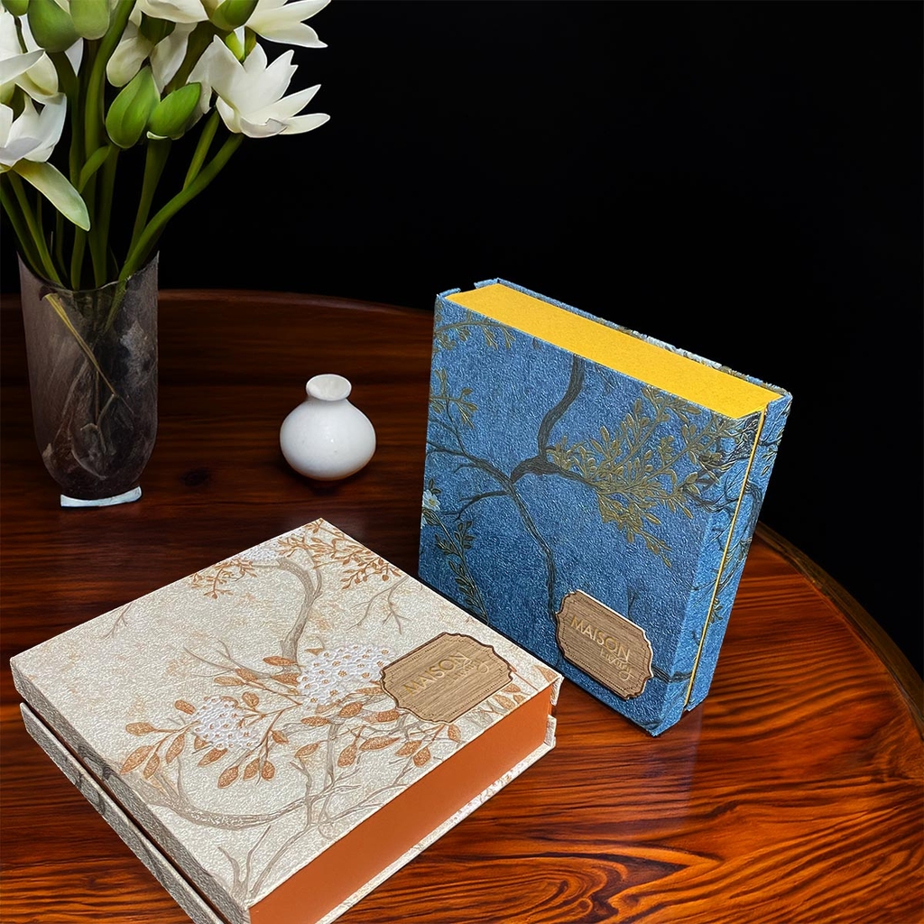 Hộp quà Tết "Dạ Thảo" của thương hiệu Maison Luxury là biểu tượng của sự sang trọng và tinh tế, được thiết kế dành riêng cho những ai trân trọng giá trị truyền thống và mong muốn gửi gắm yêu thương đến những người thân yêu trong dịp Tết. Với chất liệu giấy giả da cao cấp, "Dạ Thảo" toát lên vẻ ngoài đẳng cấp và khác biệt. Bề mặt hộp được trang trí bằng họa tiết 3D ép nhũ kim tinh xảo, tạo hiệu ứng lấp lánh, khiến hộp quà không chỉ là một món quà mà còn là một tác phẩm nghệ thuật tràn đầy phong vị Tết.