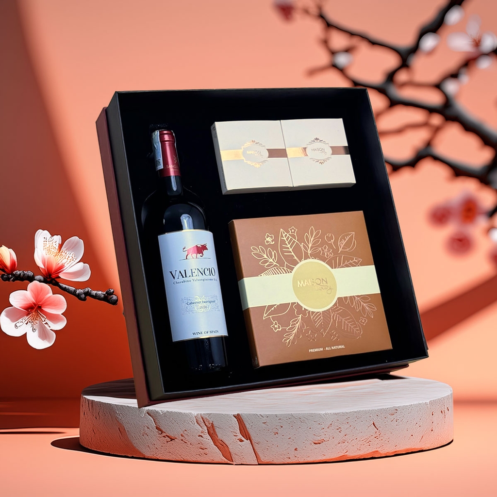 Bên trong hộp quà là sự kết hợp tinh tế giữa vang nhập khẩu cùng các sản phẩm Maison cao cấp, mang đến trải nghiệm quà Tết vừa hiện đại, vừa ấm cúng. Mỗi chi tiết trong hộp quà Tết Maison đều được chăm chút tỉ mỉ – từ tông màu, bố cục đến chất liệu – thể hiện đẳng cấp và sự trân trọng của người tặng.